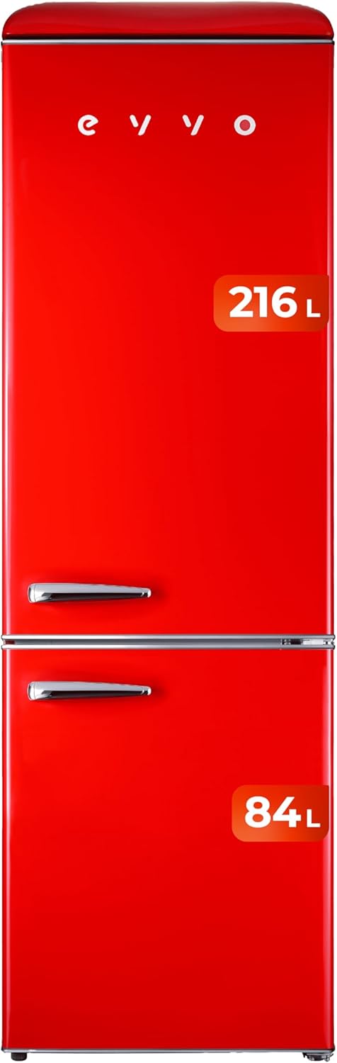 Frigorífico Evvo estilo retro con gran capacidad de refrigeración y congelador inferior.